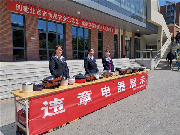 4月25日,中国科学院大学雁栖湖校区管理办公室在东区三食堂门前举行“违章电器警示展览”活动。