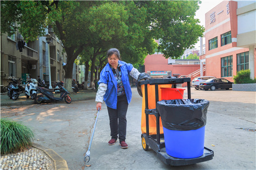 对黄阿姨来说,最大的快乐、最大的幸福莫过于把自己的精神力量奉献给他人。黄阿姨在工作时,从不喊苦抱怨,在她看来,自己作为校园卫生的守护者,能为师生们带来整洁的校园环境,莫过于是人生最大的快乐。记得有一次,黄阿姨在捡白色垃圾时,不慎踩到了一枚生锈的铁钉,铁钉刺穿了黄阿姨单薄的鞋底,但她仍坚持工作,不愿意去医院包扎伤口,她一直重复地说:“一点小伤,不碍事的,可不能耽误了工作。”最后在保洁片长的多次劝说下,黄阿姨才答应去医院检查伤口。这就是黄建容,一名脚踏实地、兢兢业业的后勤物业保洁员。
