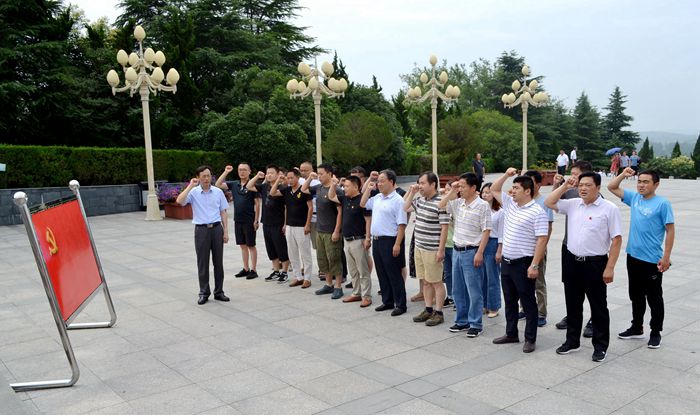 来安半塔皖东烈士陵园是来安县党性教育基地,也是著名的爱国主义教育基地。广大党员先后参观了半塔革命纪念馆、刘少奇纪念馆和新四军二师纪念馆等。在青山翠柏间,在肃穆的烈士纪念塔下,党员们向革命烈士敬献花篮,并向无数壮烈牺牲的革命先驱进行了默哀。后勤党总支书记王邦俊带领全体党员面向鲜红党旗重温了入党誓词,传递了继承先烈遗志、不忘初心、牢记使命、做新时代合格党员的心声。
