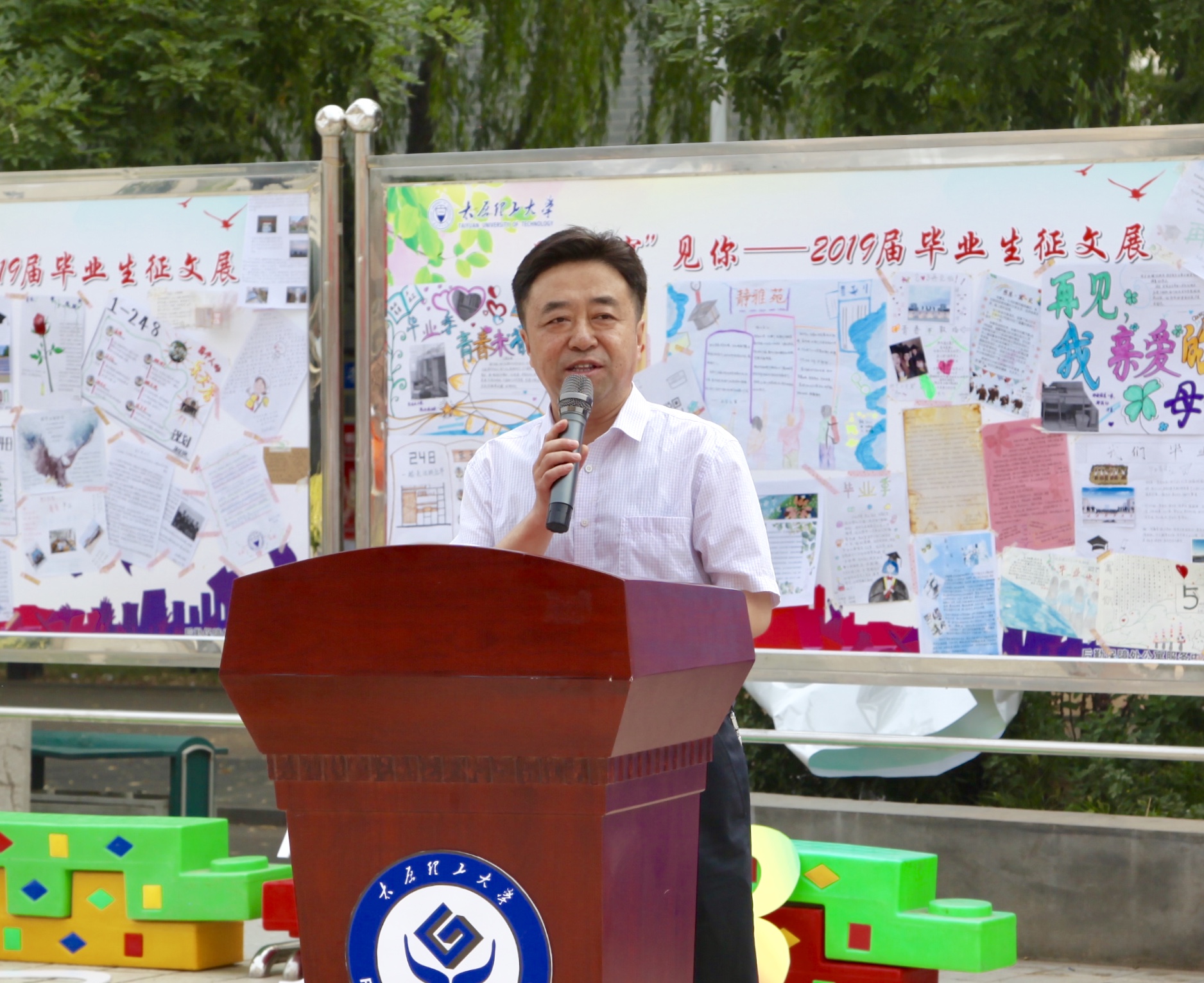 公寓服务中心主任张文基代表公寓工作人员亲切致辞,他表达了举办此次毕业生文明离校系列活动的目的意义,勉励同学们牢记太理“求实创新”校训,重塑理想,敢于拼搏,自强不息,止于至善,在今后各自的岗位上演绎精彩人生,一句“太原理工大学后勤保障处公寓服务中心永远是你们的家”道出了他对毕业学子深切的感情。