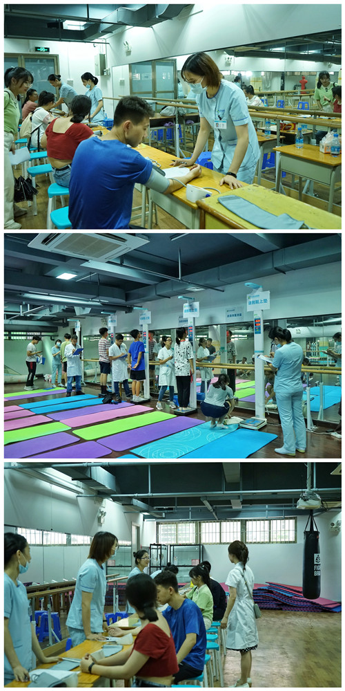 体检现场,医务人员进行会场布置和准备,伴随着医务人员的一声声询问,整个体检工作有序、顺畅地进行着。