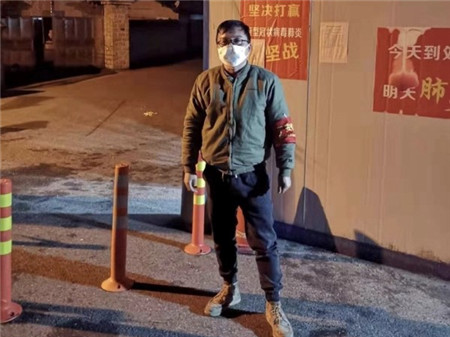 文教服务中心设计师何陈欢:不畏疫情,主动请缨,于2020年2月7日正式成为临安区锦城镇横街村的抗疫防控志愿者,主要工作是在防疫卡点测量过往人员体温、检查来往车辆的通行证并进行询问登记,向村民们普及宣传新型冠状病毒感染的肺炎防控知识。看着日渐增加的患者人数,我希望可以尽早战胜疫情,大家可以安安心心出来晒太阳,不再担心病毒。疫情肆虐之时我愿为家乡出点力,尽最大努力保障社区居民无后顾之忧,只盼冬将至,春可期,山河无恙,人间皆安。