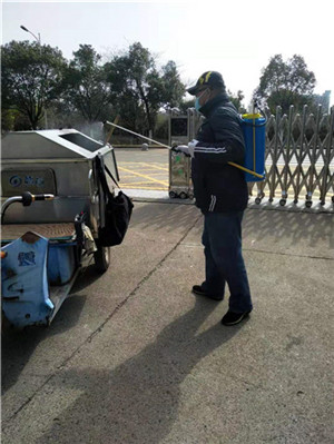 为了最大程度控制疫情,他和同事们定期对家属区的每一栋楼进行全面有效的消毒,做到楼道、走廊、电梯按钮每个角落没有死角,垃圾及时清理。每天,他还对过年停留在车库和户外停车场的车辆进行巡检,“控制学校进出的车辆,才能有效防疫,才能保证学校老师和即将返校的同学们的安全。”