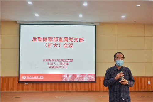 为扎实做好疫情防控工作,发挥党组织战斗堡垒作用和党员先锋模范作用,4月10日上午,电子科技大学中山学院后勤保障部直属党支部在厚德楼A101召开全体党员会议,后勤保障部全体党员及相关科室人员参会,会议由支部书记杨洪祥主持。