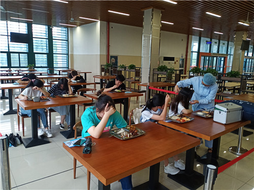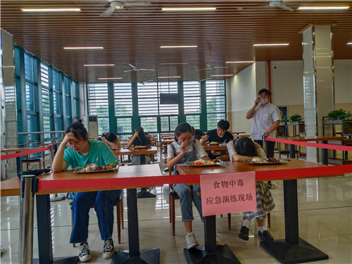 6月18日,饮食服务中心开展食物中毒应急演练,排查食堂安全风险,查漏补缺,提升员工的安全意识,检验突发事件处置流程的时效性。