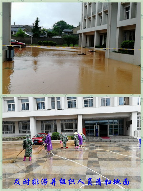 早晨6点多金陵科技学院后勤总公司物管中心江宁、幕府两校区外场员工冒着大雨提前返岗到校,巡查校园和紧急处置两个工作小组同时开展工作。打开窨井盖和雨水篦子让水快速排走、及时处置倒伏的树木、组织人员清扫地下车库的积水、雨停间隙安排人员清扫地面……,物业人不畏风雨,始终坚守工作岗位,兢兢业业地做好自己的那一份工作。物业服务工作没有什么诀窍和捷径,需要的是每一位物业员工持之以恒,认真做好每一个环节的工作。