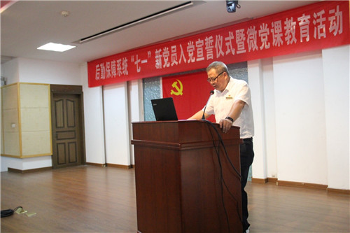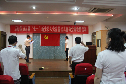 为庆祝中国共产党建党99周年,进一步提高党员的荣誉感与责任感,增强党员的政治意识,6月30日下午,江南大学后勤保障系统党委组织开展“七一”新党员入党宣誓仪式暨微党课教育活动。后勤保障系统党委书记兼后勤工作协调办公室主任方正泉、副书记兼副主任金明媚、饮食中心党支部、环境中心党支部、会议中心党支部全体党员及入党积极分子共60余人参加了活动。活动由会议中心党支部书记吴立建主持。