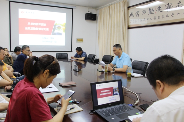 根据学校党委统一部署和后勤党总支工作安排,2021年6月17日(星期四)上午,成都大学后勤党总支在后勤会议室组织召开党总支理论学习中心组(扩大)会,成都大学后勤处处长李兵同志讲党课,后勤党总支成员、科室负责人(党员)、第一和第二支部书记参会学习。