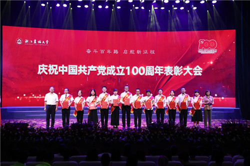 7月1日,浙江农林大学庆祝中国共产党成立100周年表彰大会暨“百年颂歌”师生合唱比赛在东湖校区影剧院举行。
