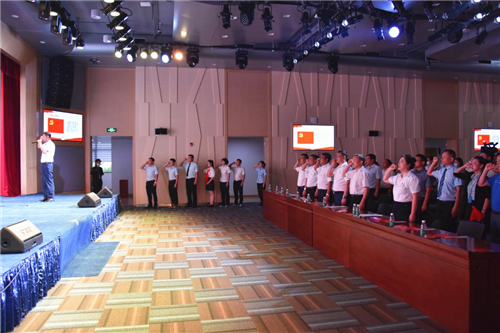 大会在庄严的国歌声中开幕,新发展党员入党宣誓、全体党员重温入党誓词,学校优秀共产党员周志锋领誓。