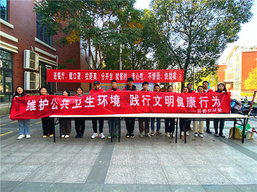 2021年,是张家港市争创国家卫生城市“十连冠”的大考之年。为深入开展爱国卫生运动,营造良好的创建氛围,助力秋冬季疫情防控。11月10日,沙洲职业工学院后勤保卫处物管科、大学生自主管理委员会在第一食堂北广场开展秋冬季爱国卫生主题宣传活动。