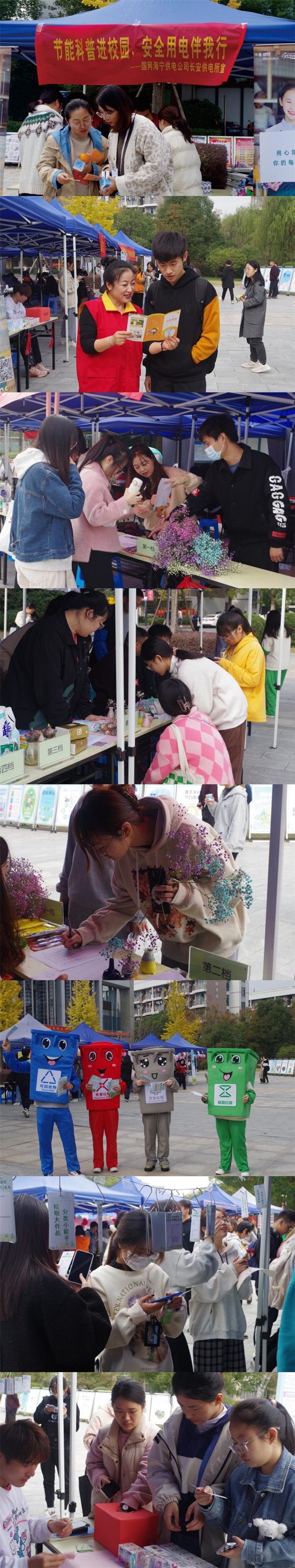 “世上没有垃圾,只有放错了的资源”。多彩的满天星、精致的小花瓶、实用的生活用品吸引了一大波同学。同学们纷纷将不用的旧衣物、鞋类、不要的书籍、快递纸盒等拿来置换,这也是后勤积极引导学生体会垃圾变废为宝的美好意义的举措之一;安全用电、节能减排宣传进校园。属地供电局的工作人员向学生宣传安全用电知识,倡议全校师生安全用电、节能环保,共同推进节约型校园建设;垃圾分类知识竞答赢抽奖机会,让参与活动的学生学会垃圾分类,善于垃圾分类。
