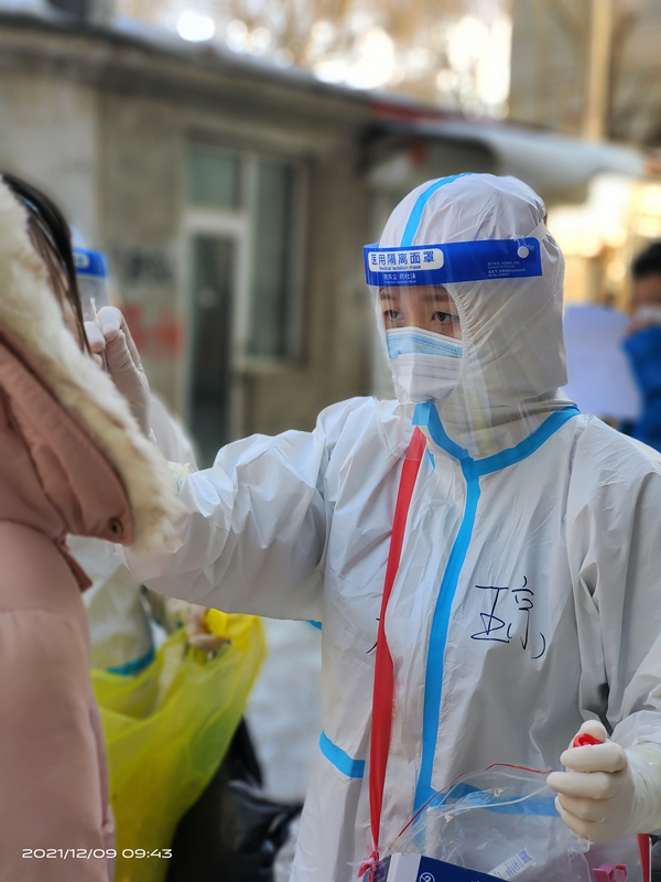疫情防控形势严峻,校医院主动作为,闻令而动,全体医务人员身披白衣战袍,冲向核酸检测第一线,用行动践行初心使命,用行动守护校园平安。在部分小区和单元实行封闭管控,导致近一半的医护人员无法参与工作的困难面前,校医院积极应对及时调整工作安排,在保证正常门诊的前提下,组建50名医护人员的核酸采样队伍,仅在12月2日-12月8日开展的四轮集中核酸检测中,就高效完成了109570名学生的集中检测任务。为避免学生在室外零下十几度的寒冷天气下排队等候检测,第三轮、四轮集中核酸检测时,校医院把严格防控与暖心服务相结合,将核酸检测点设在学生公寓,频繁更换检测地点耗时耗力,但为了保证学生健康,全体医护人员毫无怨言。截至12月8日,校医院全年已累计完成核酸检测16批次近70万人次。除了完成学校师生全民核酸采集任务外,校医院还肩负着为居家隔离人员上门入户采集核酸的任务,她们穿着笨重的防护服,或冒着寒风细雨、或顶着炎炎烈日,挨家挨户上门采集核酸,全年累计完成辖区入户核酸采样6000余次,支援隔离宾馆工作2次共9人。面对风险和挑战,面对昼夜持续奋战,没有一名医护人员临阵脱逃,没有一名医护人员叫苦喊累。每次核酸检测他们都坚持做好最后一袋医疗垃圾的回收,完成场地的全部消杀工作而最后离开,很多员工甚至来不及脱掉自己的防护服就累得瘫倒在地。除此之外,校医院、家属委员会等部门通力协作,号召动员师生及辖区居民接种疫苗,截至目前已累计接种新冠疫苗第一剂55728人次,第二剂57070人次,第三剂8475人次,我校学生群体两剂疫苗接种率达到94.3%,累计评估疫苗禁忌症1359人次。