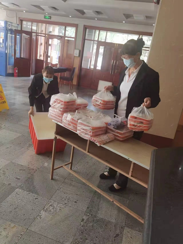 培训楼做为距离疫情最近的健康观察场所,每名员工不仅承担繁重的日常工作,更承受这巨大的心理压力。秋季学期以来,培训楼累计为7批次400余名健康观察期学生提供住宿服务保障。清理消杀客房300余间,整理铺设床铺500余张,协助分发餐食6000余次。在隔离客房投入使用期间,全员24小时待命,随时进行客房的全面消杀和重新布置,更换房间用品、床上用品,完成生活垃圾清运等工作。同时,工作人员还要对一些隔离期间出现心理波动的学生进行必要的安抚工作,尽量去减轻他们的焦躁情绪。