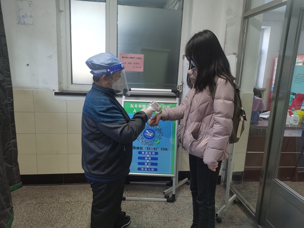 健康观察期间,有一名同学一瘸一拐的被送来培训楼,看到学生行走不便,53岁的门卫大爷庞向伟,认真询问得知学生脚踝有伤,打了厚厚的石膏,庞师傅二话不说,做好防护后主动将他背到楼上健康观察房间;学生在健康观察上网课期间,手机出现故障,庞师傅怕影响学生上课,第一时间骑上自行车,顶着寒风为学生将手机修好并送回。