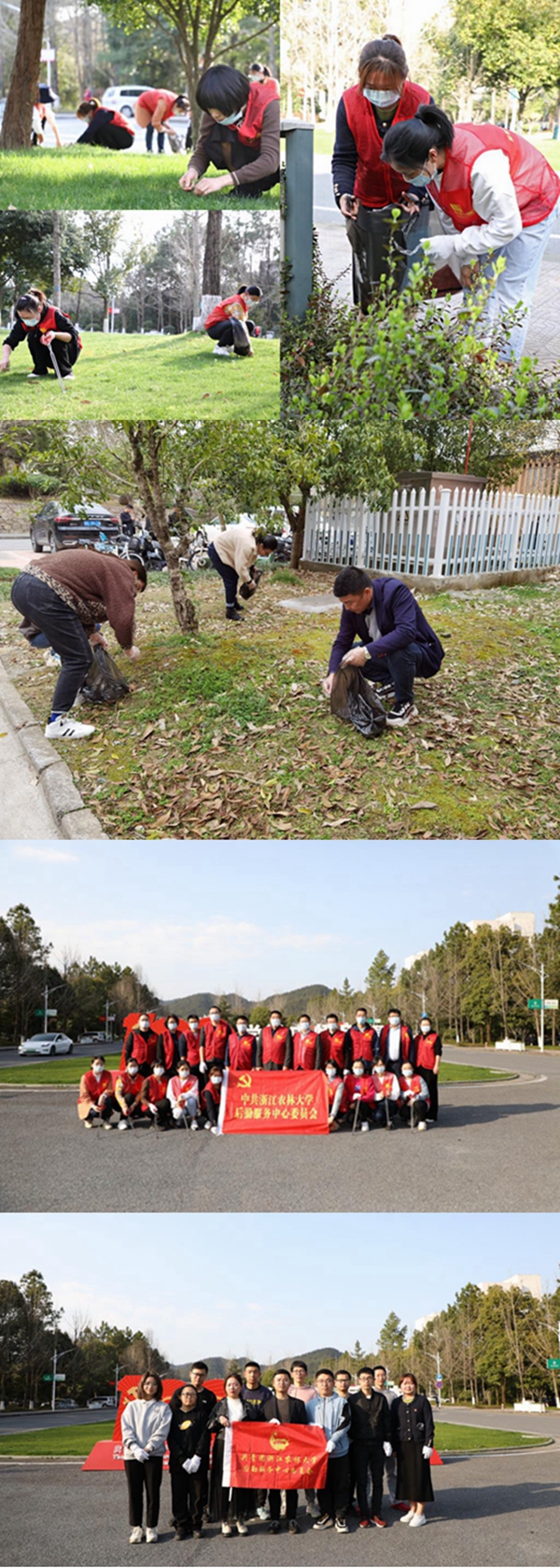 阳春三月,春暖花开,第44个植树节即将来临。为践行生态理念,建设生态校园,浙江农林大学后勤服务中心党委组织各党支部、团支部开展了“除草护绿、美化校园”志愿服务活动。3月11日下午,后勤中心党委组织第一党支部党员、团员青年,重点对东湖校区主干道草坪、绿化带的杂草、枯枝以及白色垃圾进行集中清理。